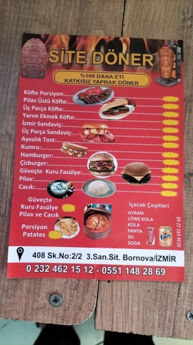 Sanayi Site Dönercisi olarak Bornova, İzmir’de günlük yaşamın temposuna eşlik eden güvenilir bir lezzet noktasıyız. Tüm ürünlerimizi hijyenik koşullarda, kaliteli malzemelerle ve özenli sunum anlayışıyla hazırlıyoruz. Menümüzde yer alan karışık sandviçler, tavuk sote, makarna, köfte ve patates kızartması gibi alternatifler; et ve tavuk döner ile dürüm çeşitleriyle birleşerek herkesin damak zevkine hitap ediyor. Sanayi bölgesinde çalışanlar başta olmak üzere, sıcak ve pratik bir yemek deneyimi arayan herkes için kaliteli, hızlı ve uygun fiyatlı çözümler sunuyoruz. Günün her saatinde aynı standartla hizmet veriyor, lezzeti alışkanlığa dönüştürüyoruz.